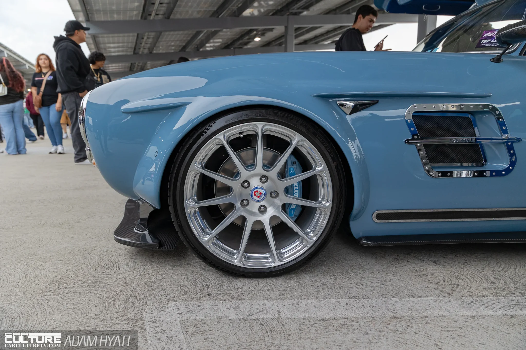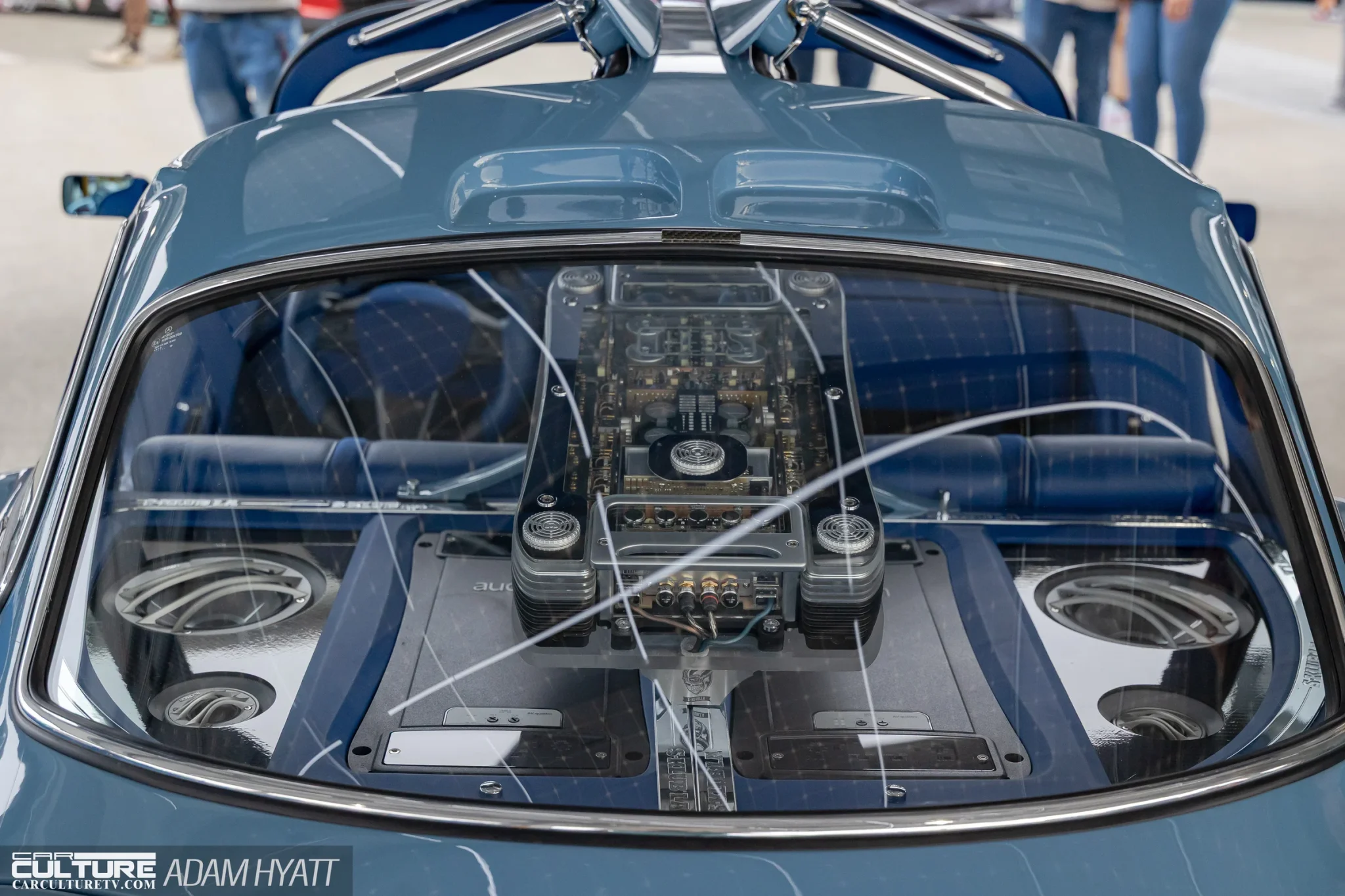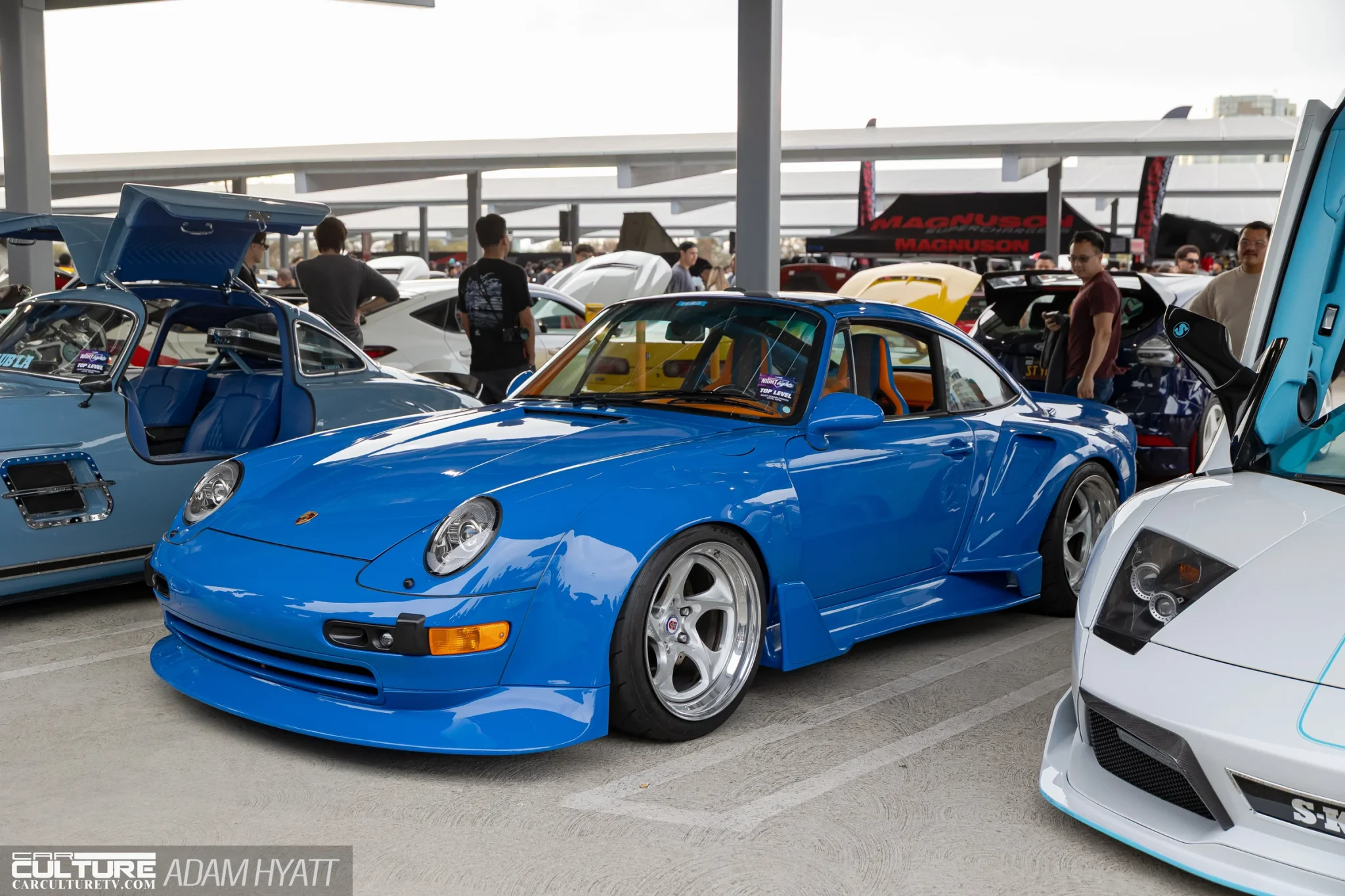 A blue Porsche 993 widebody with an orange interior pulled steady crowds. The S-Klub LA Mercedes 300SL restomod in slate blue opened its gullwing doors and didn’t close them for hours.