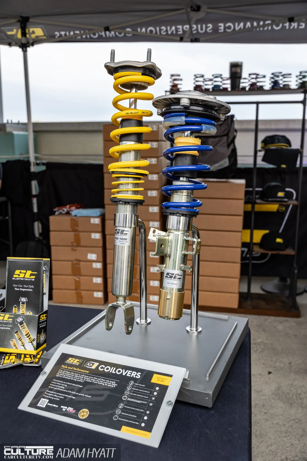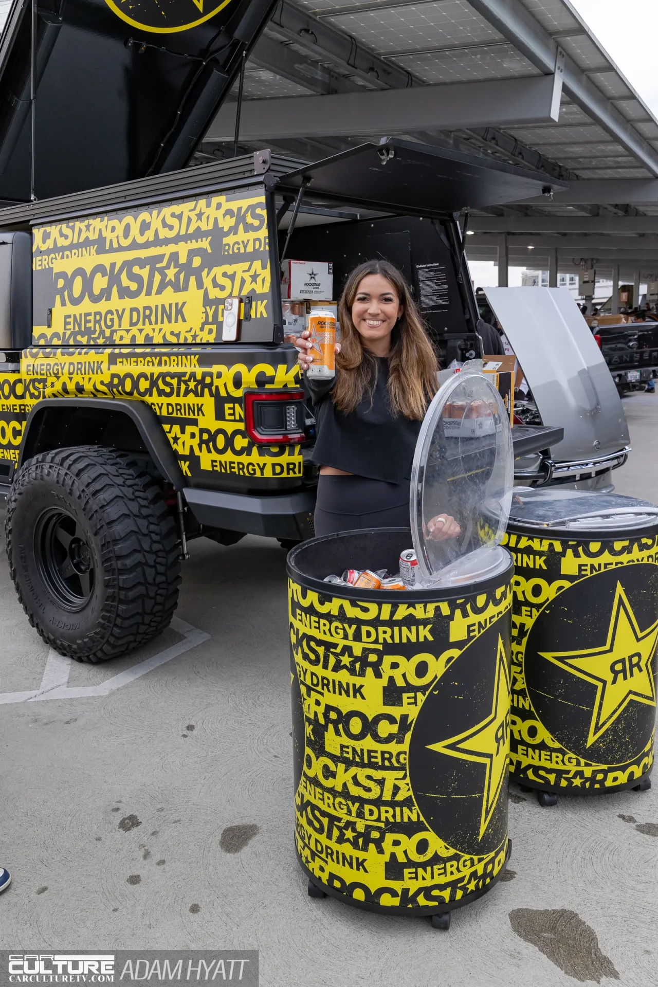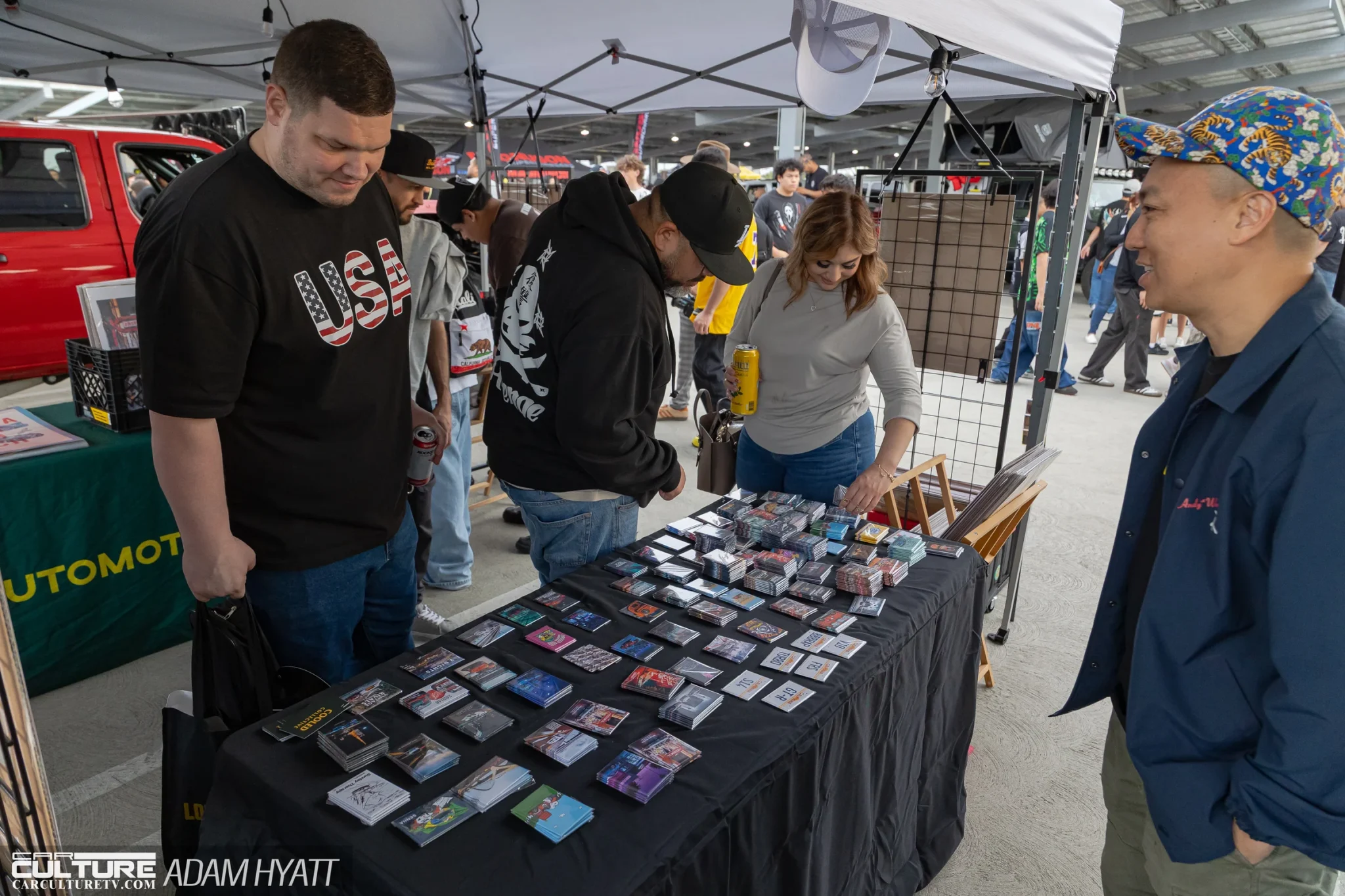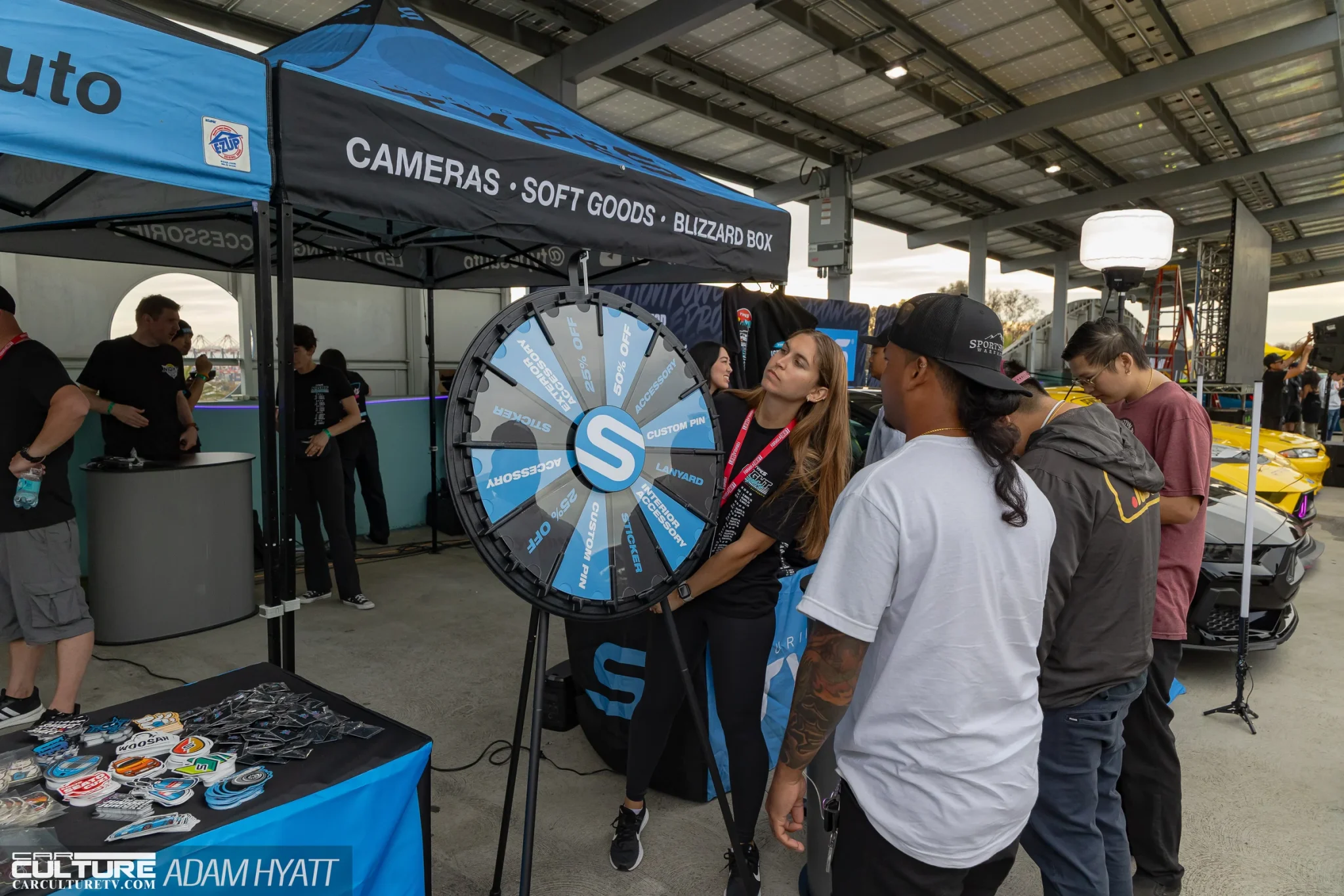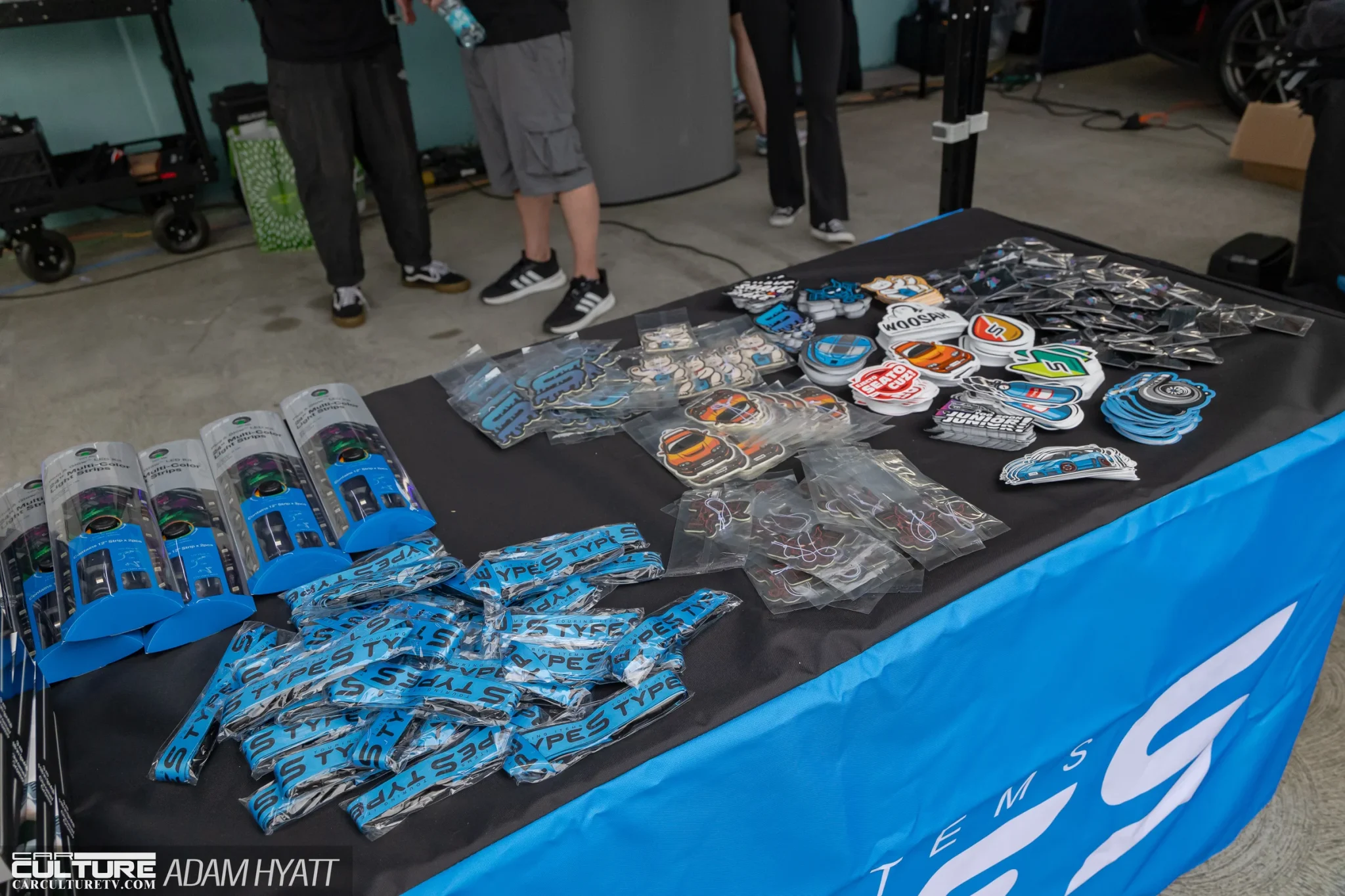 The vendor area gave attendees plenty of reasons to stay off the elevators. ST Suspension and Litespeed Racing both had booths on the floor, and Type S Auto and Pennzoil ran giveaways throughout the night. Rockstar Energy was on hand keeping the crowd fueled, and Cooled Collective brought their presence to the mix as well. Garage Speed Japan set up shop on the rooftop near the DDE NSX, drawing a steady stream of enthusiasts browsing their gear. The vendor spread was tight enough to walk in a single pass but packed enough to slow everyone down.